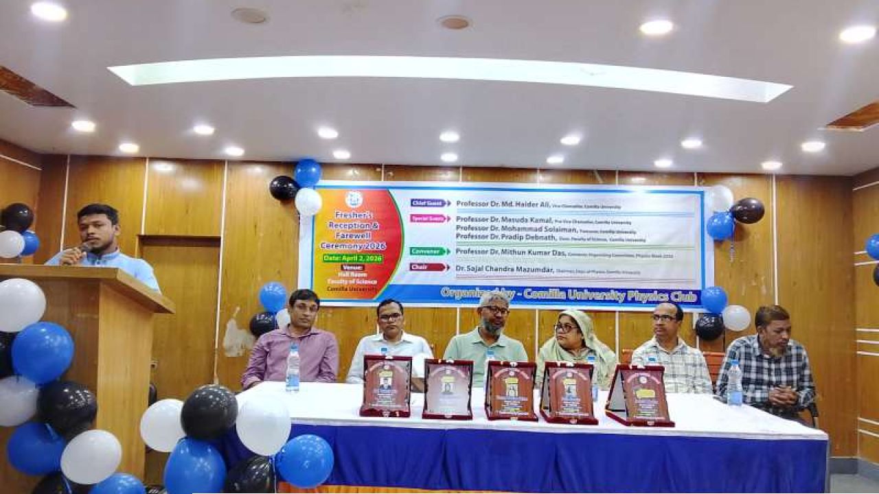 কুমিল্লা বিশ্ববিদ্যালয়ের (কুবি) পদার্থবিজ্ঞান বিভাগের শিক্ষার্থীদের সংগঠন 'ফিজিক্স ক্লাব'এর উদ্যোগে নবীন বরণ এবং প্রবীণ বিদায় সংবর্ধনা অনুষ্ঠিত হয়েছে।
