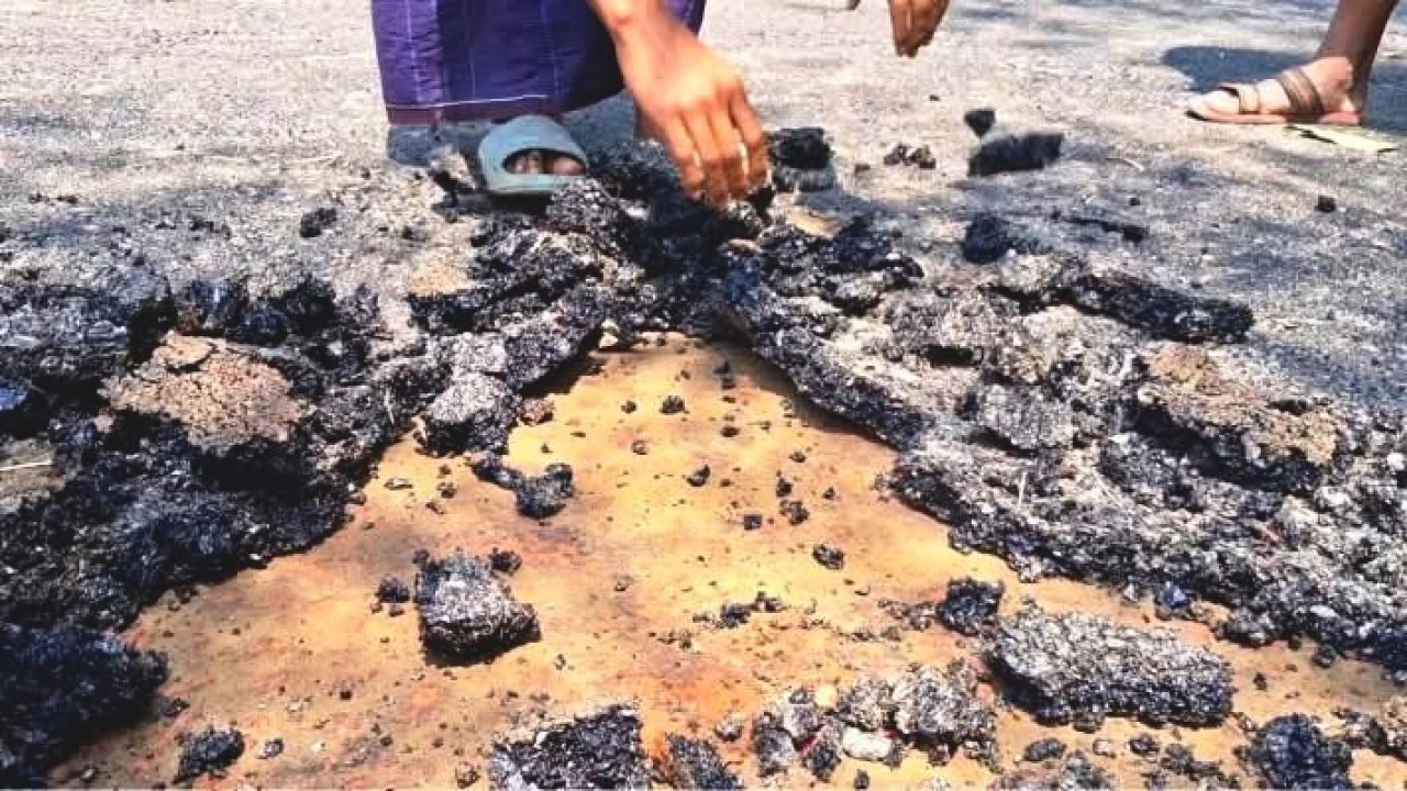 সামাজিক যোগাযোগমাধ্যমে ছড়িয়ে পড়া ভিডিওতে দেখা যায়, এক যুবক সড়কের কার্পেটিং করা অংশ হাত দিয়েই অনায়াসে তুলে ফেলছেন। নামমাত্র বিটুমিন ব্যবহার করায় পিচের আস্তরণ মাটির সঙ্গে লেগে নেই। স্থানীয়দের অভিযোগ, অত্যন্ত নিম্নমানের উপকরণ ও দায়সারাভাবে কাজ করায় এই পরিস্থিতির সৃষ্টি হয়েছে।