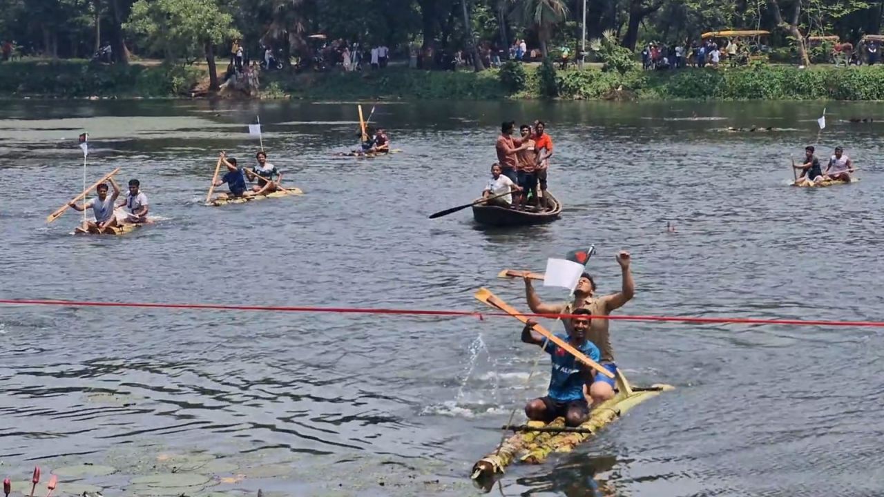 চৈত্র সংক্রান্তি ও বাঙালির লোকজ সংস্কৃতিকে নতুন প্রজন্মের কাছে তুলে ধরতে জাহাঙ্গীরনগর বিশ্ববিদ্যালয়ে (জাবি) প্রথমবারের মতো অনুষ্ঠিত হয়েছে ঐতিহ্যবাহী ‘ভেলা বাইচ’ প্রতিযোগিতা। সোমবার (১৩ এপ্রিল ২০২৬) বেলা ১১টায় বিশ্ববিদ্যালয়ের পুরাতন কলাভবন সংলগ্ন ‘রংপুকুরে’ উৎসবমুখর পরিবেশে এই প্রতিযোগিতার আয়োজন করে বিশ্ববিদ্যালয় কেন্দ্রীয় শিক্ষার্থী সংসদ (জাকসু)।