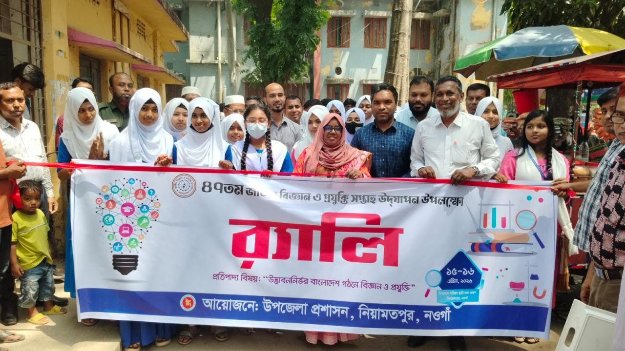 নওগাঁর নিয়ামতপুরে বর্ণাঢ্য শোভাযাত্রা ও মেলার মধ্য দিয়ে ৪৭তম জাতীয় বিজ্ঞান ও প্রযুক্তি সপ্তাহের আনুষ্ঠানিক উদ্বোধন করা হয়েছে। বুধবার (১৫ এপ্রিল) সকালে উপজেলা প্রশাসনের উদ্যোগে এই অনুষ্ঠানের আয়োজন করা হয়।